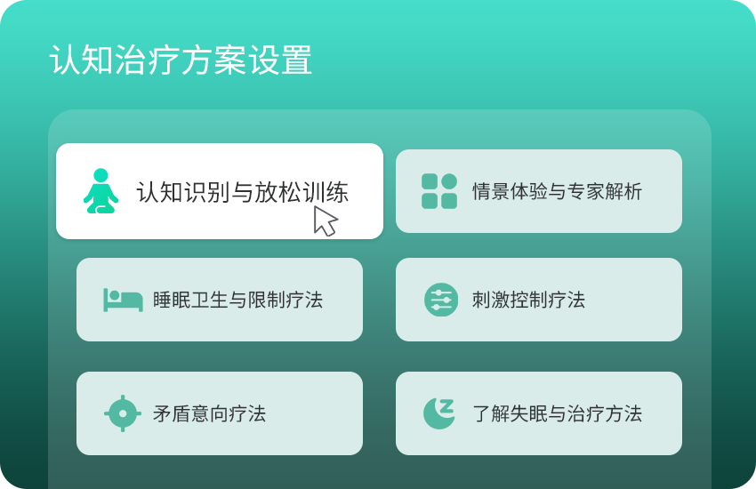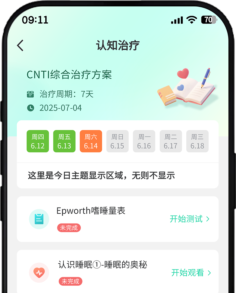 阶段性认知巩固练习、放松训练、睡眠日记等模块