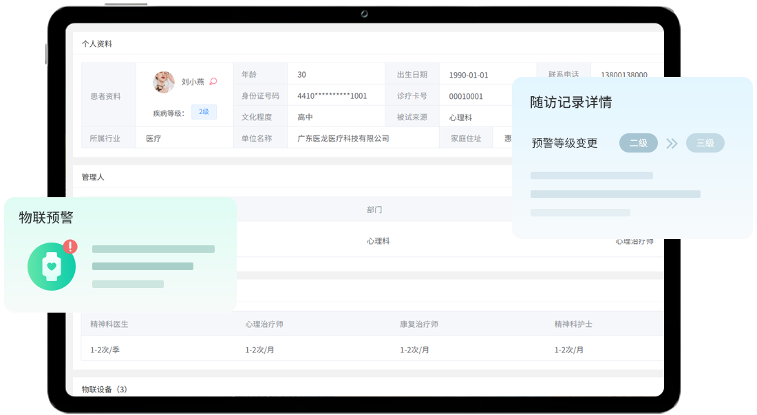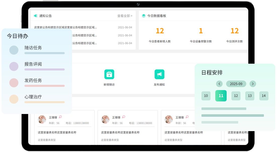 以“六位一体”精准服务模式为核心,整合精神科医护、心理治疗师、康复治疗师、社工、民警及监护人等多方力量,为出院回归社区的精神障碍患者提供持续、系统化的康复管理。该模式显著提升患者药物依从性、改善社会功能与生活质量,有效控制病情波动、降低复发风险。平台致力于破解重性精神障碍患者出院后管理难、回归社会难的问题,为社区精神卫生服务提供系统化、智能化的新路径。